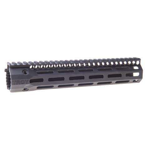 Troy’s BattleRails with M-LOK cooling holes are narrow, sleek and provide exceptional balance and controllability. Lightweight with an ultra-low profile, snag-free design, they are ideal for close quarters maneuverability. Machined from hardened aircraft aluminum with stainless steel components and finished in Mil-Spec hardcoat anodizing, they mount to a standard barrel nut. Available in 5 lengths for 5.56mm Carbines