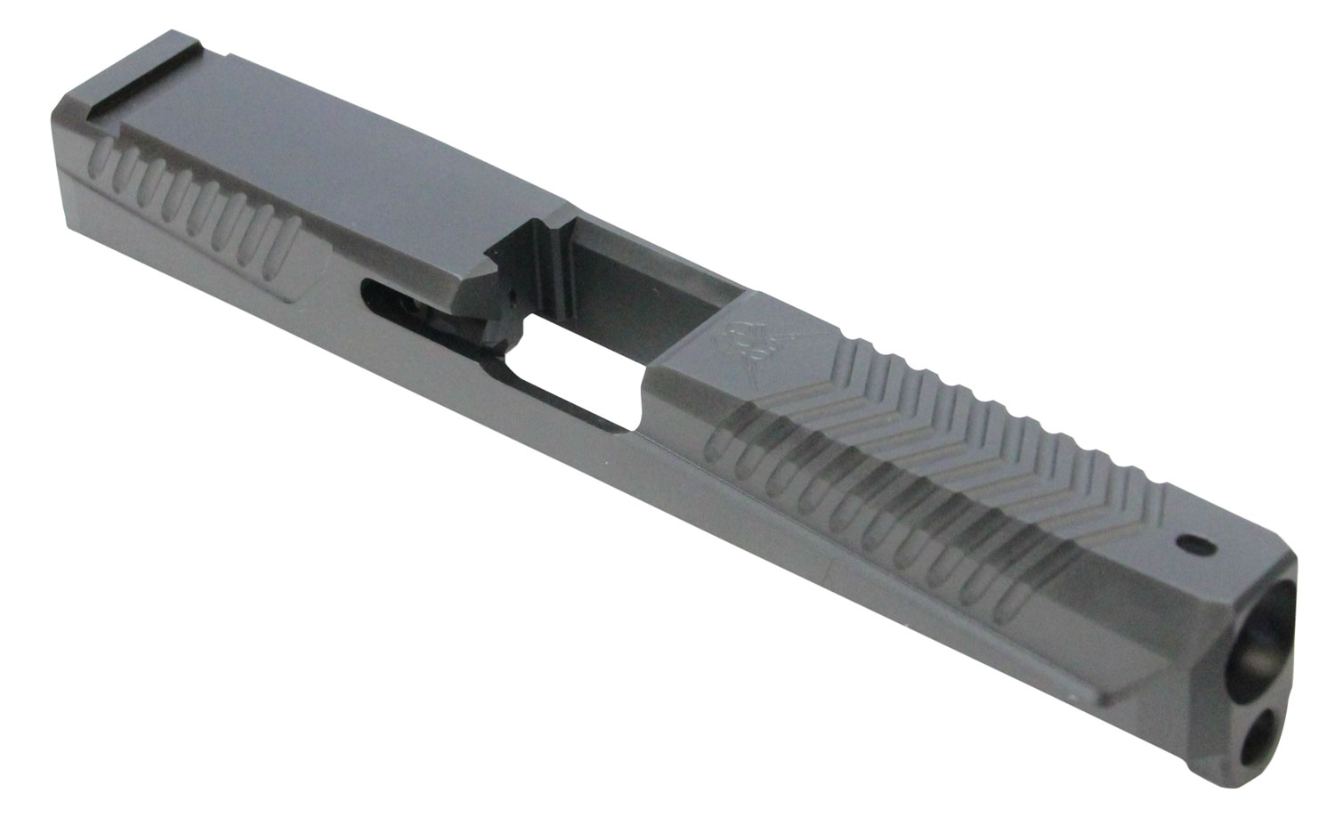 The VooDoo Innovations Glock Slide Assembly is designed as an improved drop-in fit for Glock. The slide is profiled and lightened to reduce recipricol mass and decrease felt recoil. It is cut from stainless steel with enhanced front and rear cocking serrations for improved manipulation and improved slide geometry.