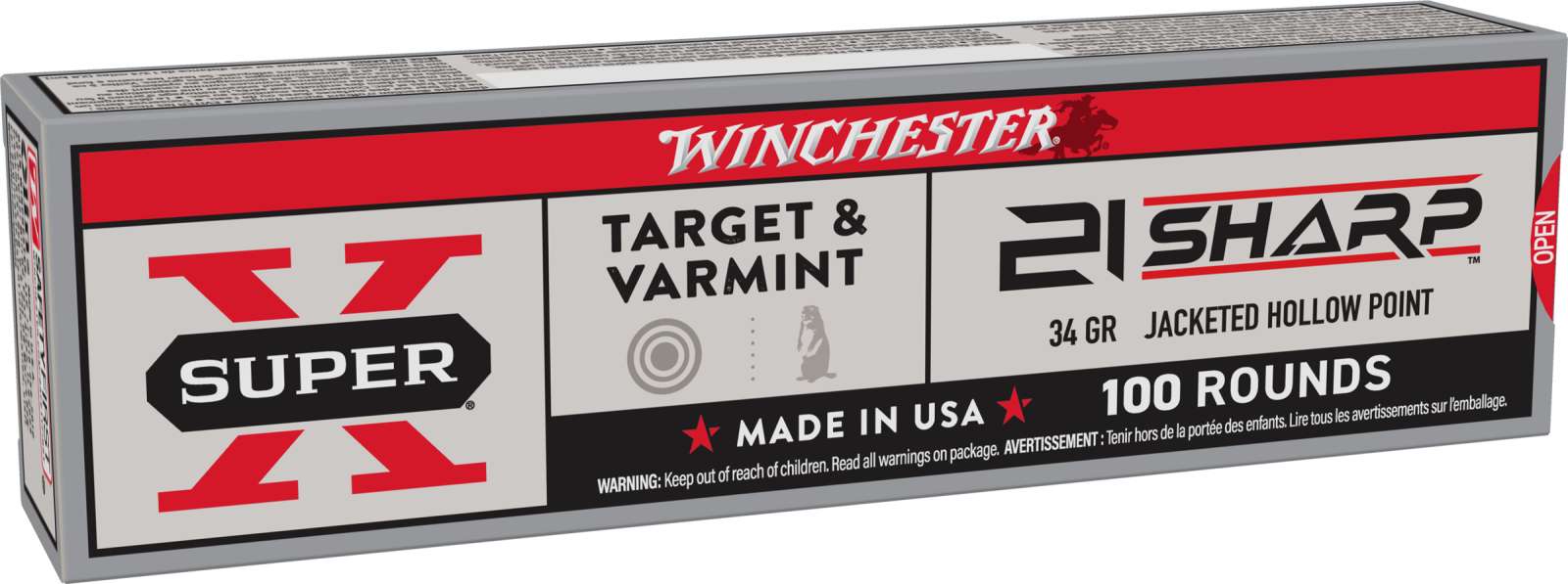 Winchester Ammo X21JHP Super X 21Sharp 34gr Jacketed Hollow Point 100 Per Box/20 Case