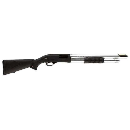 Winchester’s SXP Marine Defender is built to resist the roughest weather on your boat, at your cabin, or in your camp. Whether it’s multi-gun competition or protecting your home and family, the Marine Defender is a perfect choice. Its inertia-assisted action, six-shell total ammo capacity (2.75″ shells), durable composite stock, and tactical ribbed forearm give you an edge against any odds. This shotgun features matte hard chrome plating on the barrel, magazine tube, slide arms, and other components for the ultimate protection against wear and the elements. The alloy receiver is drilled/tapped for scope bases, and the Marine Defender includes a brass bead front sight and plus a removable Truglo fiber-optic sight for a fast, natural sight picture. It has a drop-out trigger group for easy cleaning. The matte black synthetic stock has textured gripping surfaces a sure, non-slip grip and, and an Inflex technology recoil pad. It includes one Invector-Plus Flush cylinder choke tube for use with slugs or buckshot.