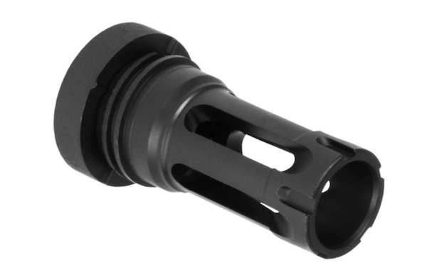 The Phantom flash hider is used with the YHM Q.D. Phantom Sound Suppressor. It retains the excellent flash hiding capabilities of the original Phantom. This flash hider also accepts the Phantom 7.62 Sound Suppressor. This flash hider will NOT accommodate the YHM .22 Q.D. or 9mm Q.D. suppressors. The Carbon Scrapers (Teeth) remove or scrape carbon from the internal support system of your can. The Dual Support System supports and aligns the suppressor to your bore. The five (5) port design decreases visible flash. The External Locking Mechanism keeps heat away from the spring mechanism. A High-Temperature Spring holds up better over a longer service life. The aggressive teeth give it a mean aggressive look. The External Grooves were removed for a sleek smooth look and it reduces carbon build-up for easy clean up. The Dust Enclosure hides and protects all internal moving parts within the quick disconnect system. This model is for 5.56mm with 1/2″-28 TPI.